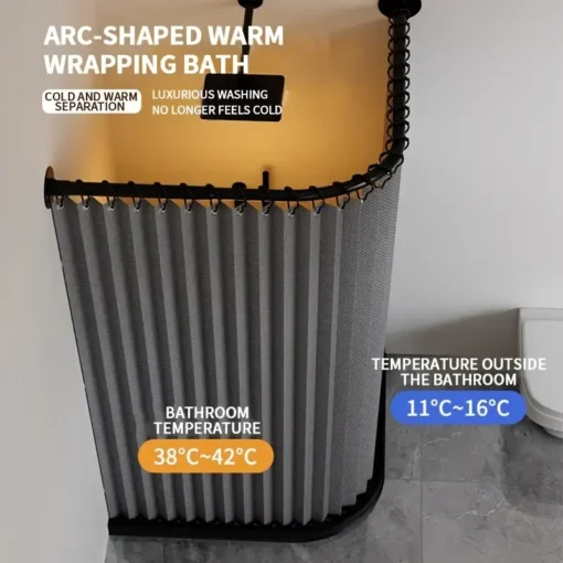 Совршено решение за бањи без кабина! Оваа аголна завеса со шипка ви овозможува да создадете приватен и сув простор при туширање, без потреба од скапи преградни системи. Шипката е телескопска и прилагодлива на различни димензии, што ја прави практична за секој дом.