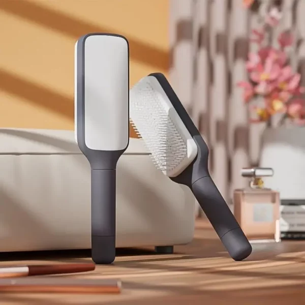 Запознајте ја интелигентната четка за коса со самочистечка функција, дизајнирана да ви заштеди време и да го направи расчешлувањето пријатно искуство.