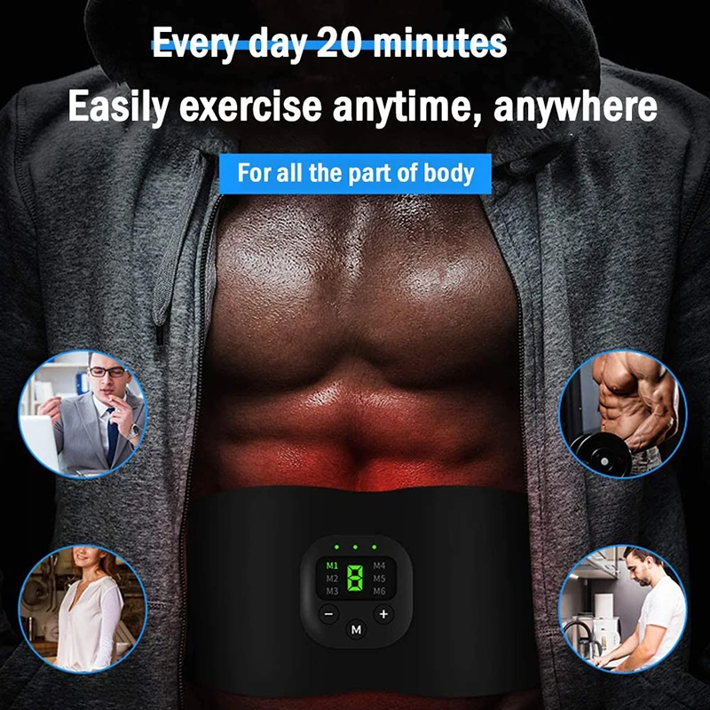 • 20 минути на ден, рекреирајте се: 20 минути на ден! Тоа е еквивалентно на 2.000 метри слободно одење, 2 часа џогирање, 1 час јога, 1 час скијање, 30 минути слободно пливање или 2 недели контрола на исхраната. Сè што треба да направите е да ги закачите влошките на вашиот стомак, раце, половина, нозе или колкови и да ги оставите да ги вежбаат вашите мускули.