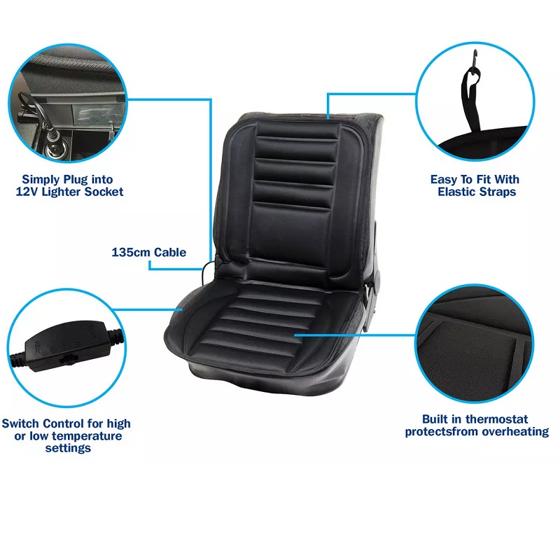 Благодарение на двата нивоа на јачина на загревање, можете да ја прилагодите температурата според вашите потреби. Компатибилноста со сите видови седишта ја прави идеална за секое возило.