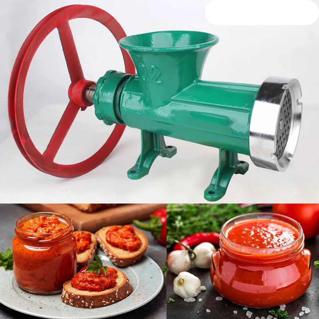 Професионална рачна мелница (32) изработена од квалитетен леан челик, дизајнирана за брзо и лесно мелење на месо и други намирници. Со големото тркало и стабилната конструкција, оваа мелница обезбедува удобна работа и одлични резултати, без потреба од електрична енергија. Совршена за домашна употреба, фарми, месарници и традиционални кујни.
