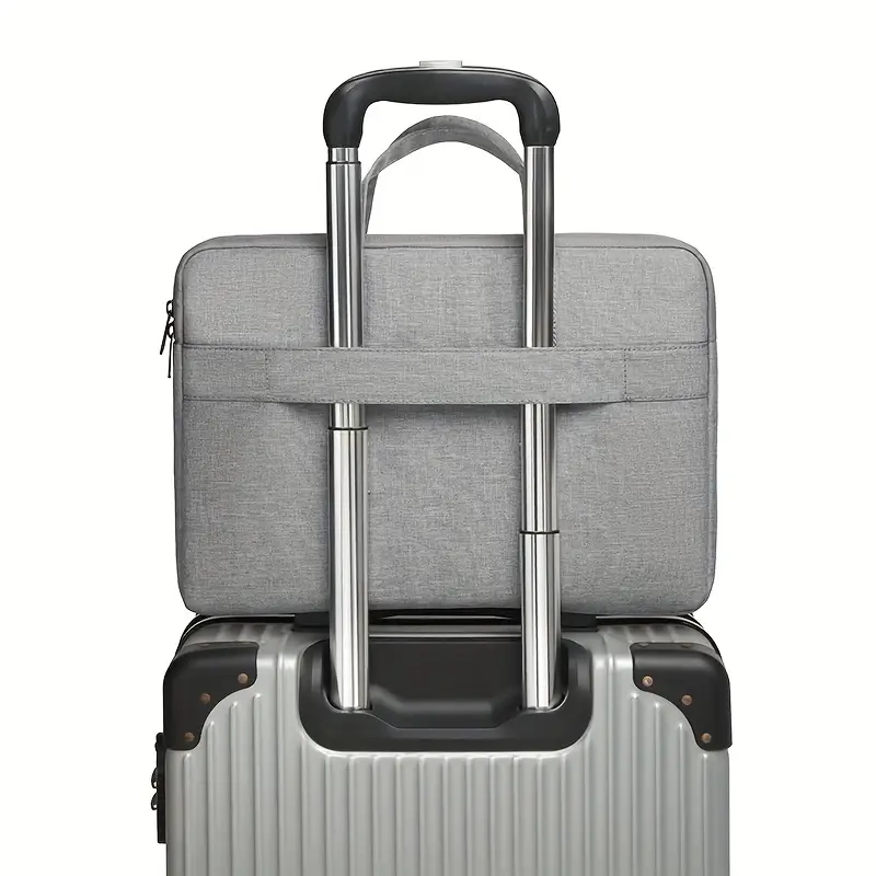 Практична и елегантна торба за лаптоп, дизајнирана за секојдневна употреба и патувања. Опремена е со специјална рамка на задната страна која лесно се прикачува на куфер, овозможувајќи удобно и безбедно движење.